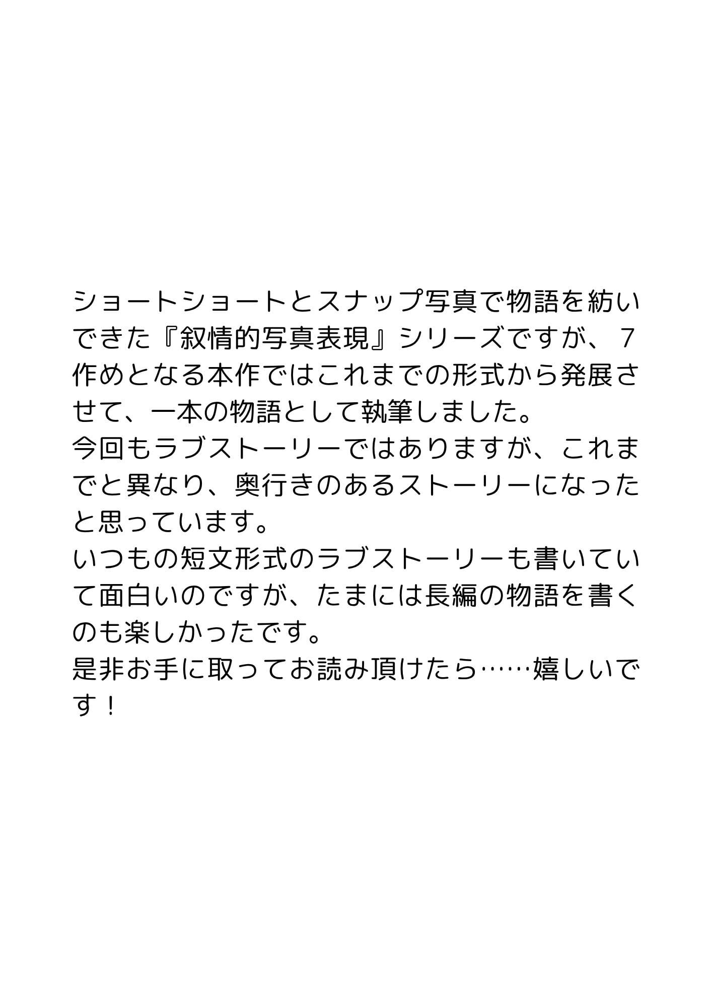 7作目を数える『叙情的写真表現』シリーズですが、今回は全編を通して1本の物語を書いてみました。